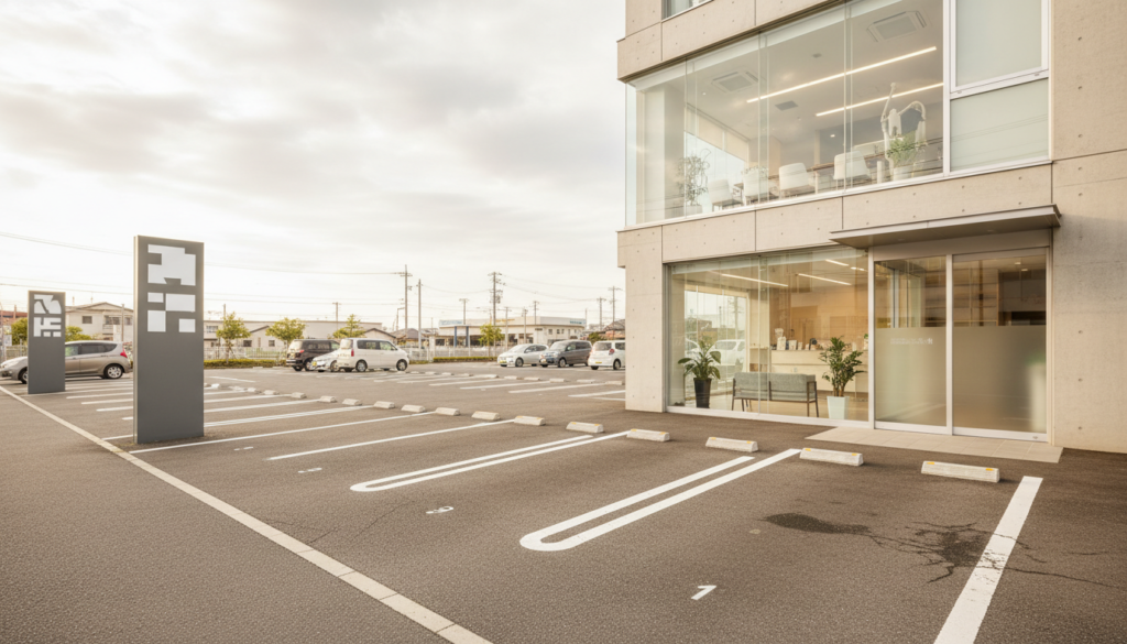 **お車**での通院を考えている方には、駐車場の台数や料金、提携駐車場の有無を確認することをおすすめします。海神あらき歯科・矯正歯科のように大型駐車場を完備している医院なら、お子様連れやご高齢の方でも安心して通院できます。