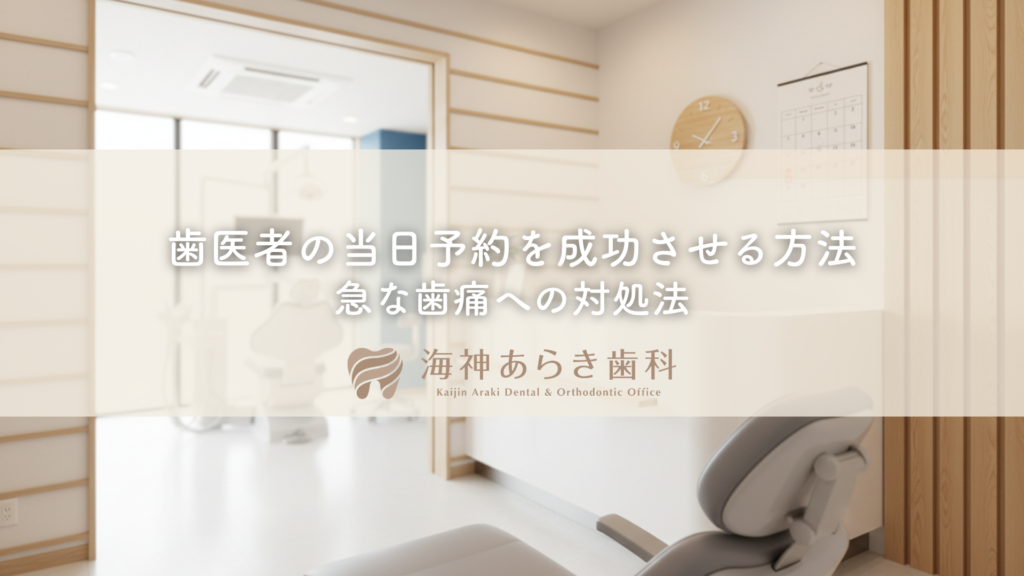 この記事では、急な歯痛が起きたときに当日予約を成功させるための具体的な方法や、電話での伝え方、応急処置の方法など、緊急時に役立つ情報をまとめました。海神あらき歯科・矯正歯科では、土日祝も診療を行っており、急なトラブルにも柔軟に対応しています。