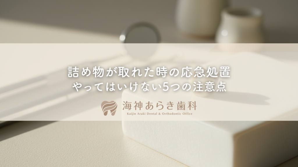 この記事では、海神あらき歯科・矯正歯科の院長として多くの患者様の急患対応をしてきた経験から、詰め物が取れた時の正しい応急処置と、絶対にやってはいけない5つの注意点を詳しく解説します。