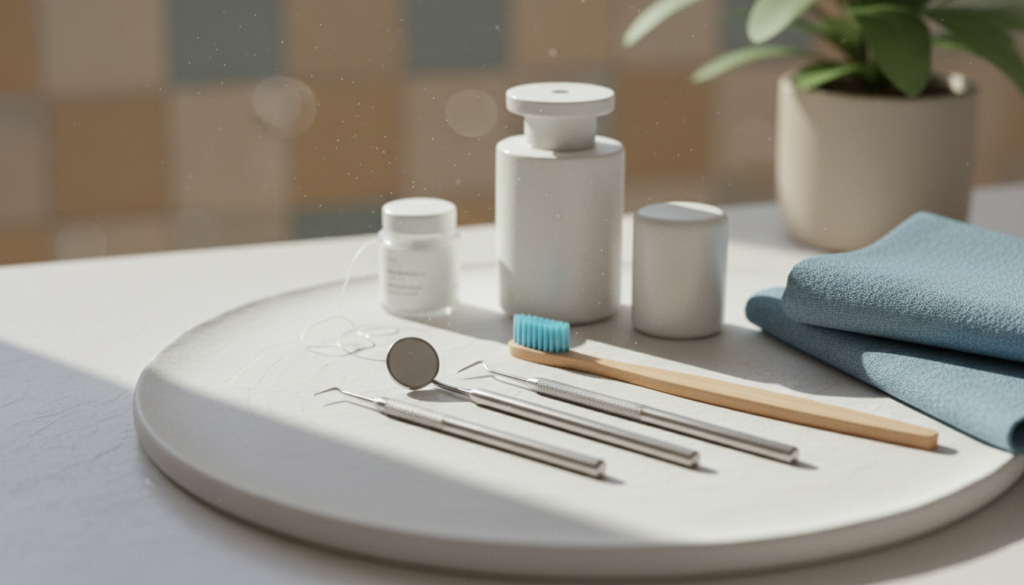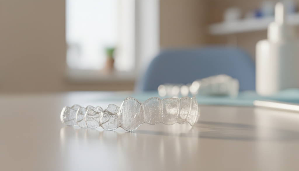 1日の終わりには、マウスピースを専用の洗浄剤でしっかり洗浄しましょう。就寝中は長時間装着したままになるため、清潔な状態を保つことがとても大切です。マウスピースに汚れが残ると、着色や虫歯、口臭の原因になるため、丁寧なケアを心がけましょう。