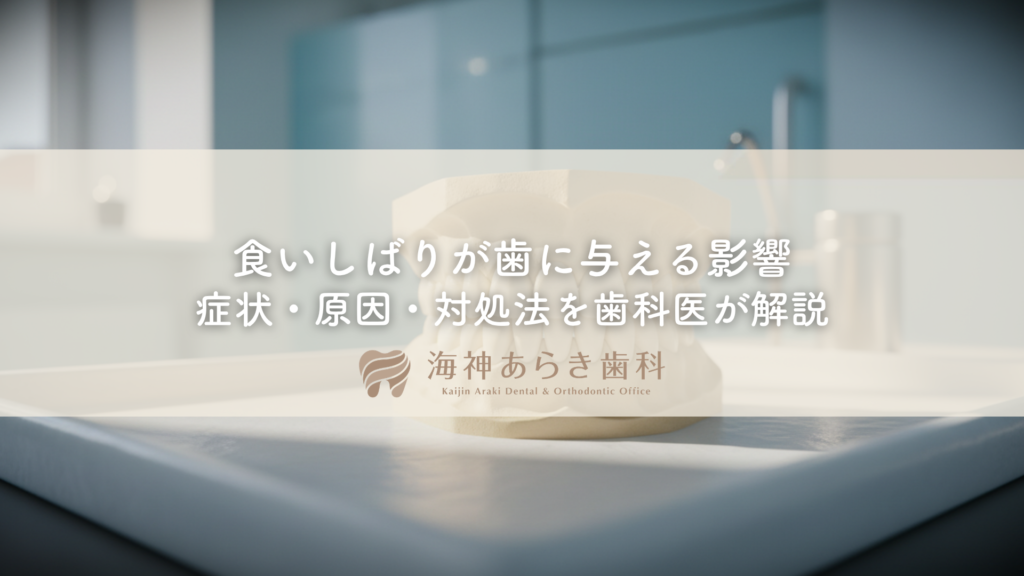 放置すると、歯のすり減りや詰め物の破損、さらには顎関節症や歯周病の悪化まで引き起こすことがあります。今回は、船橋市海神の海神あらき歯科・矯正歯科の院長として、食いしばりが歯や体に与える影響・原因・対処法を詳しくご説明します。