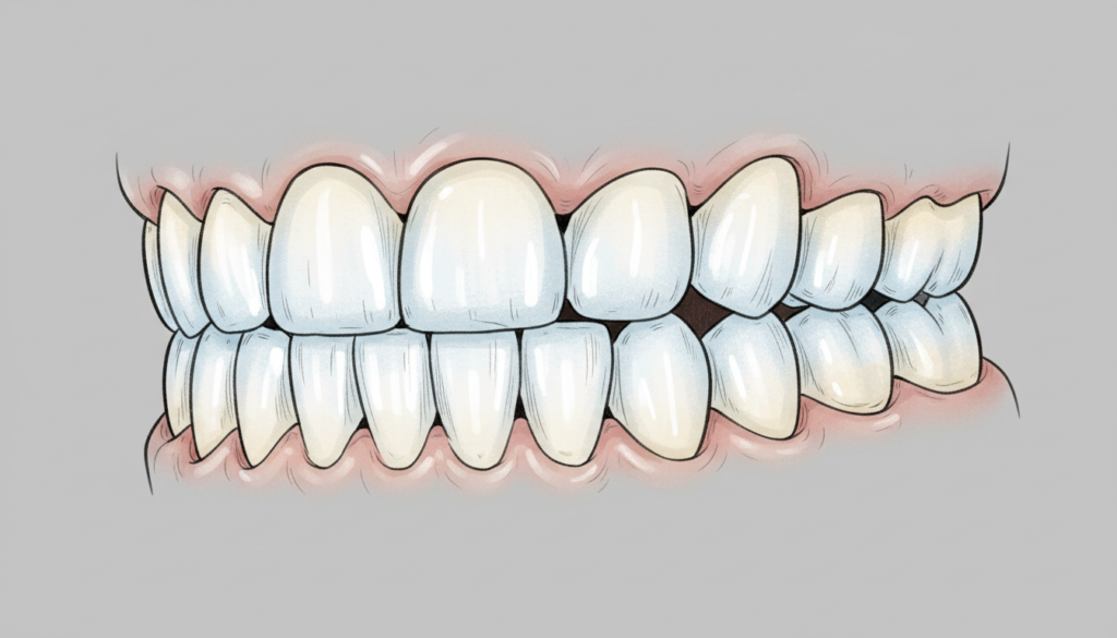 開咬(かいこう)や過蓋咬合(かがいこうごう)などの不正咬合がある場合、無意識に奥歯で強く噛もうとする癖がつきやすくなります。歯並びの乱れは見た目だけの問題ではなく、食いしばりの誘因にもなります。