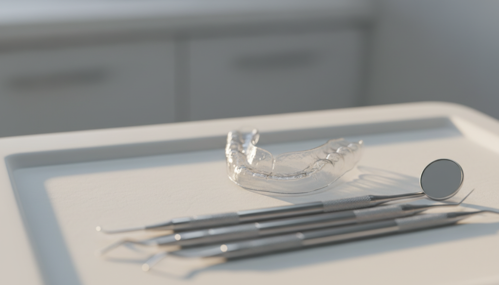 当院では、透明で目立ちにくいマウスピース矯正(インビザライン)やワイヤー矯正に対応しており、出っ歯・ガタつき・すきっ歯など幅広い症例に対応しています。食いしばりの背景に噛み合わせの問題がある場合は、矯正治療も選択肢の一つとしてご提案しています。